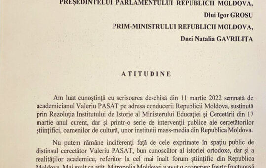 Mitropolia Chișinăului și a Întregii Moldovei publicat pe pagina Web o scrisoare adresată conducerii de vîrf a țării, cerîndu-i să...